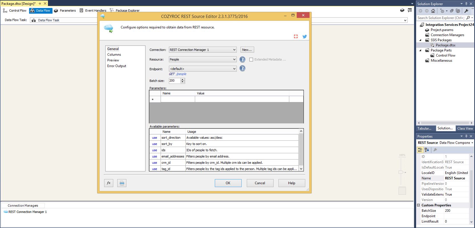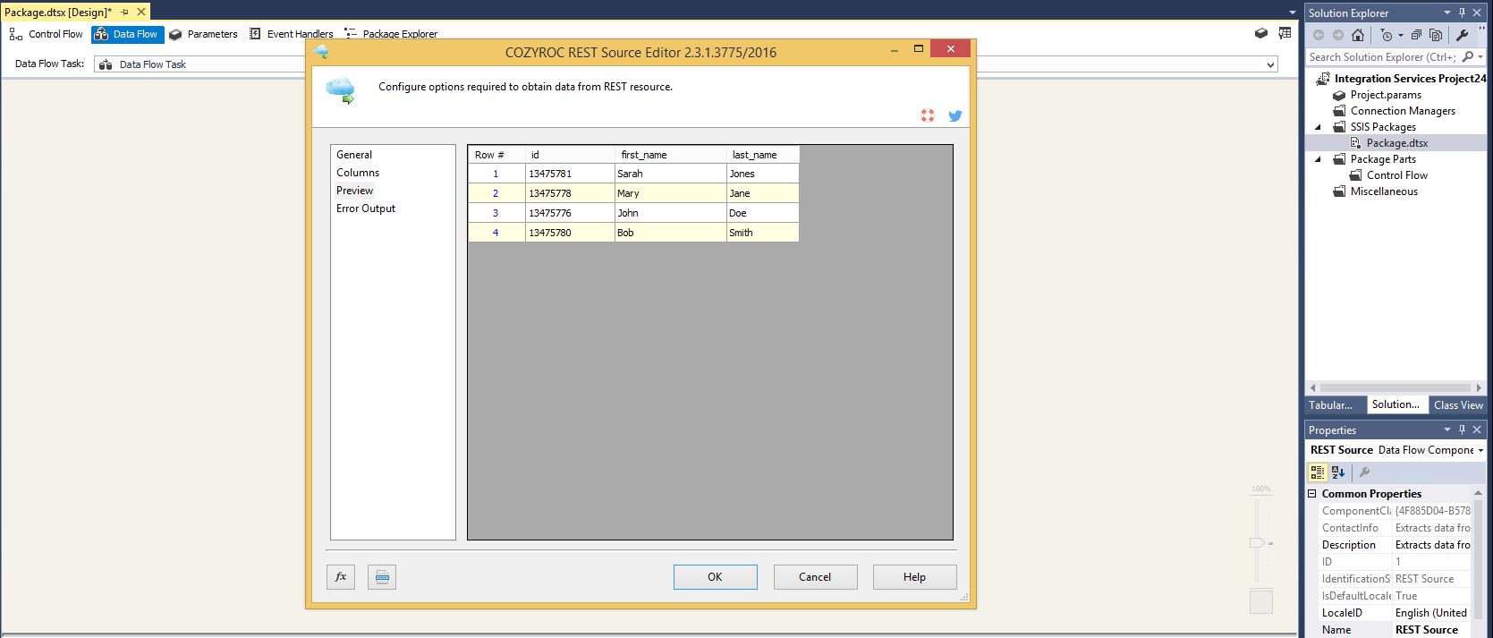 The powerful and elegant Data Flow Task Plus, not found in any other competitive product on the market. Data Flow Task Plus allows creation of Dynamic data flows at runtime and can be used with COZYROC's REST adapters.