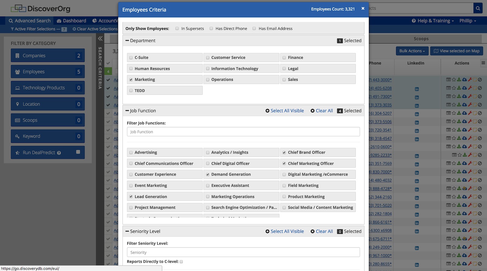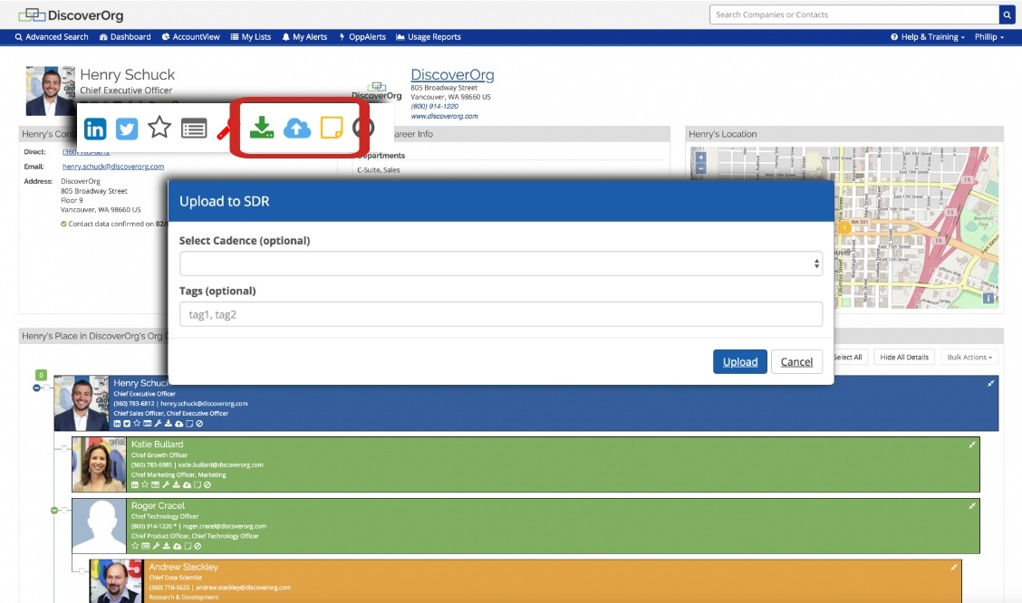 DiscoverOrg’s Salesloft Connector allows you to identify target Companies and Employees that can be seamlessly uploaded to Salesloft Cadences in just a few clicks. Add records from the DiscoverOrg platform, or from anywhere on the web using the DiscoverOrg Google Chrome Extension.