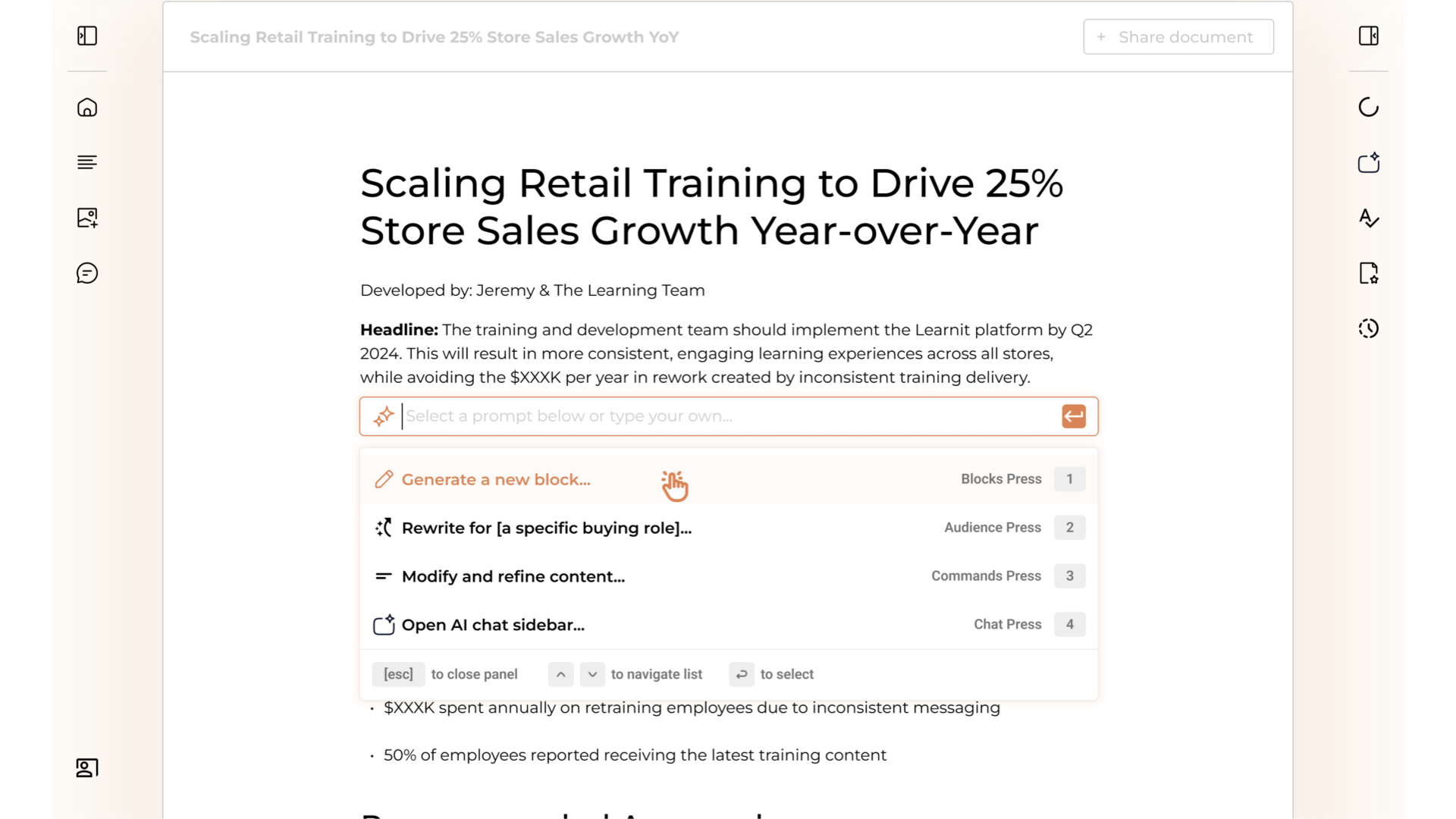 - Document each step in your sales playbook, for each account: trigger content like business cases, demo agendas, leadership briefs, handoff docs and more, at each sales stage.