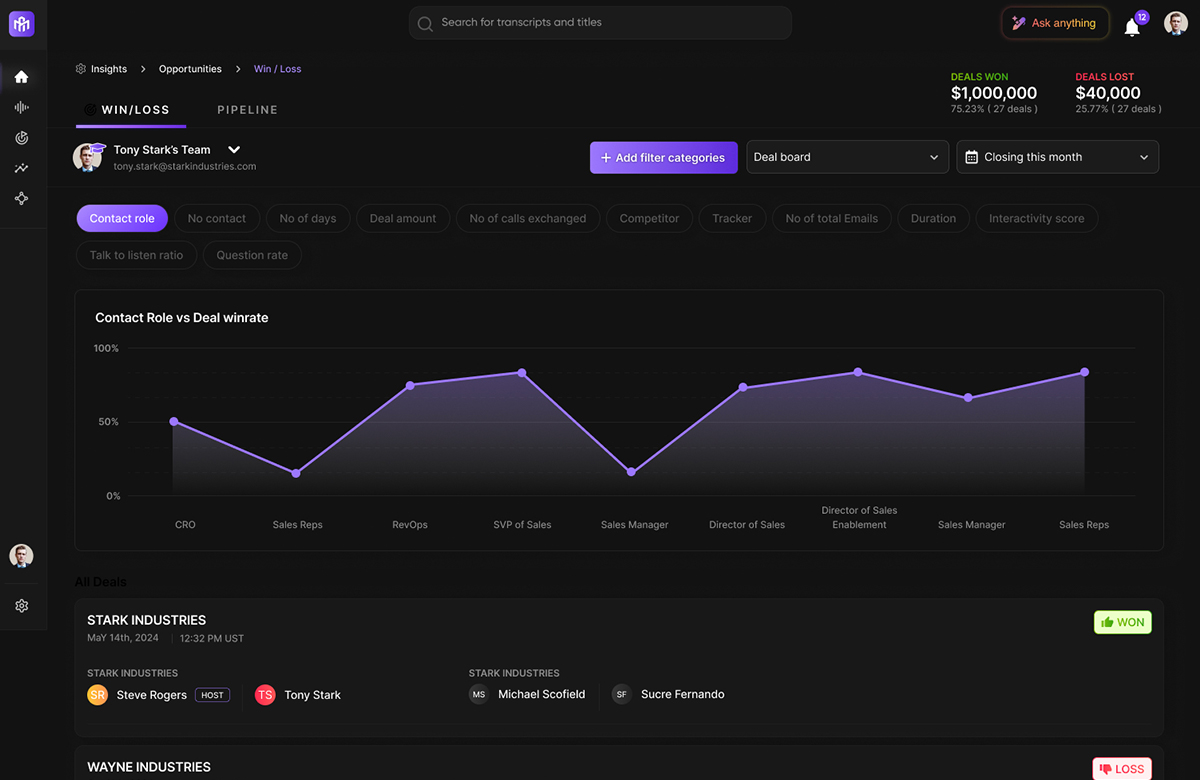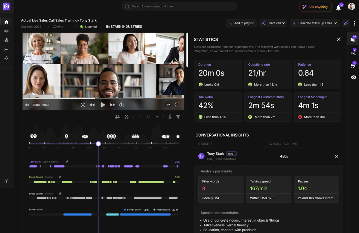 - Identify conversation trends and give precise, data-driven feedback for any call.