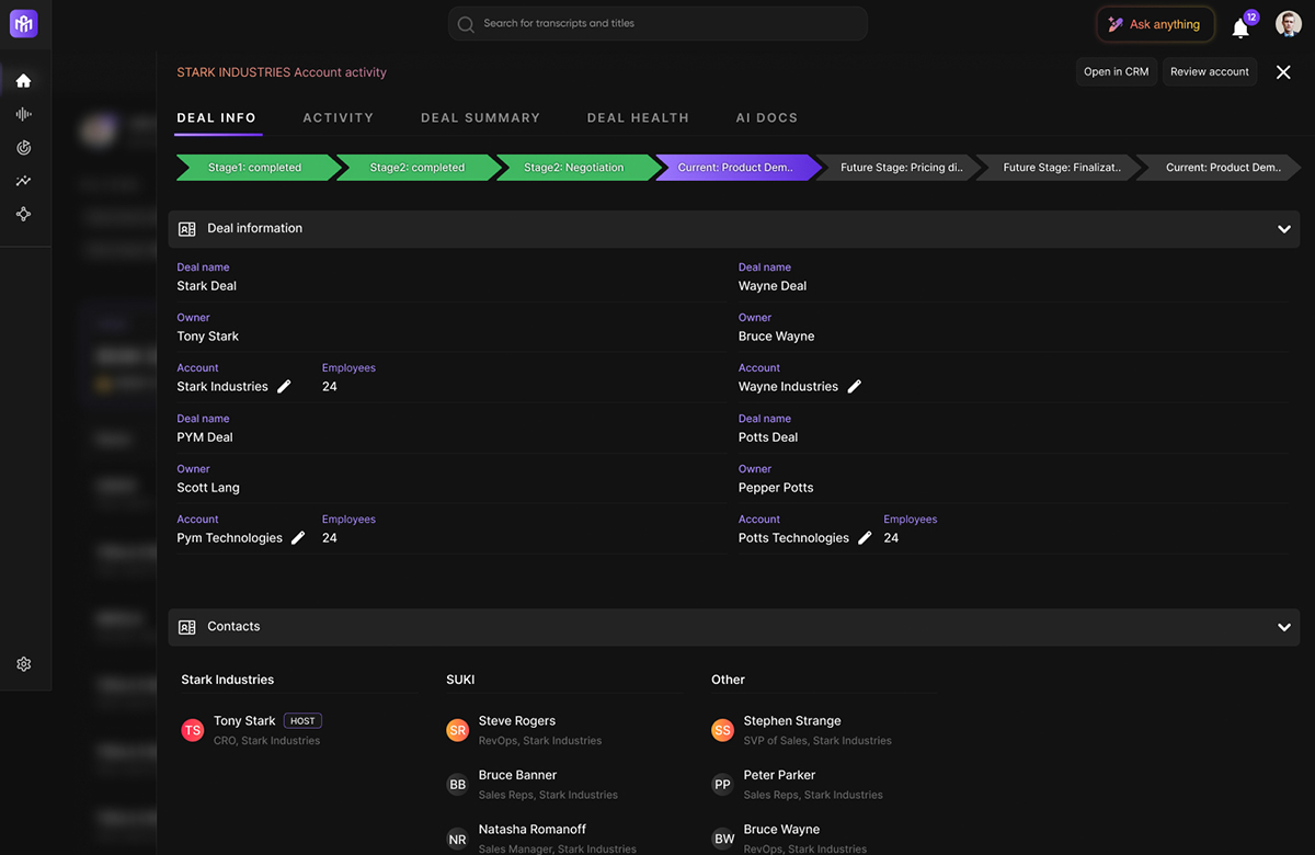 - Automatically capture key moments, follow-ups, and next steps during every interaction.
