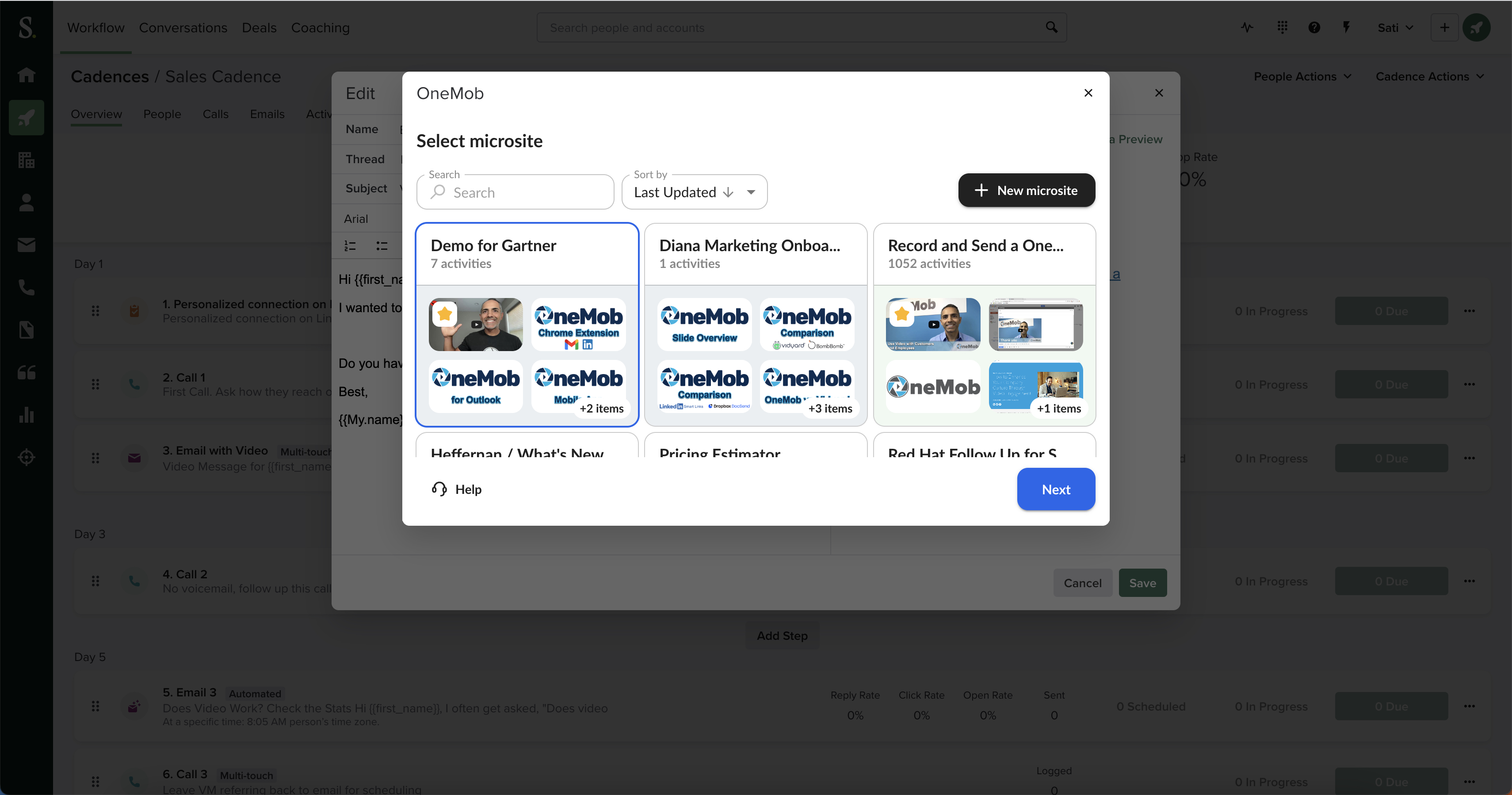 OneMob seamlessly integrates with your existing tech stack, including CRM integration for Salesforce, Dynamics, Hubspot, and more, and content integration with Zoom, Google Drive, Box, and Dropbox. With a native plugin for Gmail, Outlook, Salesloft, Salesforce and InsideSales, you can easily create and share content right from your favorite email and sales tools.