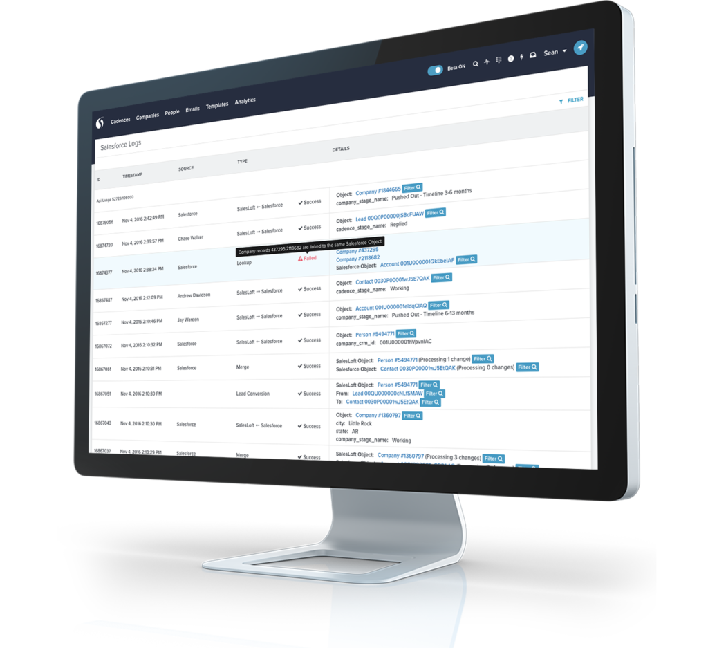 This is why Sales Operations leaders love Salesloft. Salesloft provides complete transparency and valuable insight into what data is being transferred with a real-time log of all sync activities, including their status and outcomes. Review all the details on fields, records, time, and direction. With sync logs, Administrators can easily monitor the data transfer between platforms, easily retry failed syncs and troubleshoot mapping errors, should they arise.