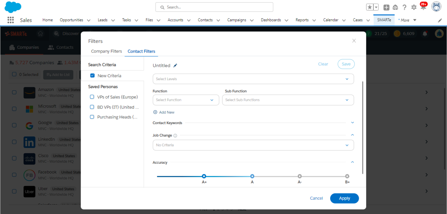 At SMARTe, we understand the challenges faced by revenue-generating teams. That's why we've created a global B2B sales intelligence platform with a strong focus on sales user experience. Our platform revolutionizes how you obtain contact and company insights for your ideal customer profile (ICP).