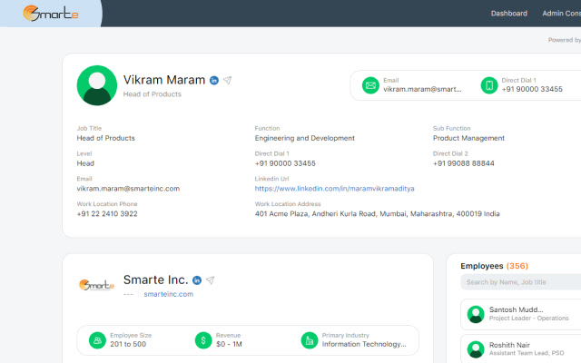With SMARTe's chrome extension, you can effortlessly find the right contact information while browsing LinkedIn or company websites and save it to your sales tech stack with just a few clicks.