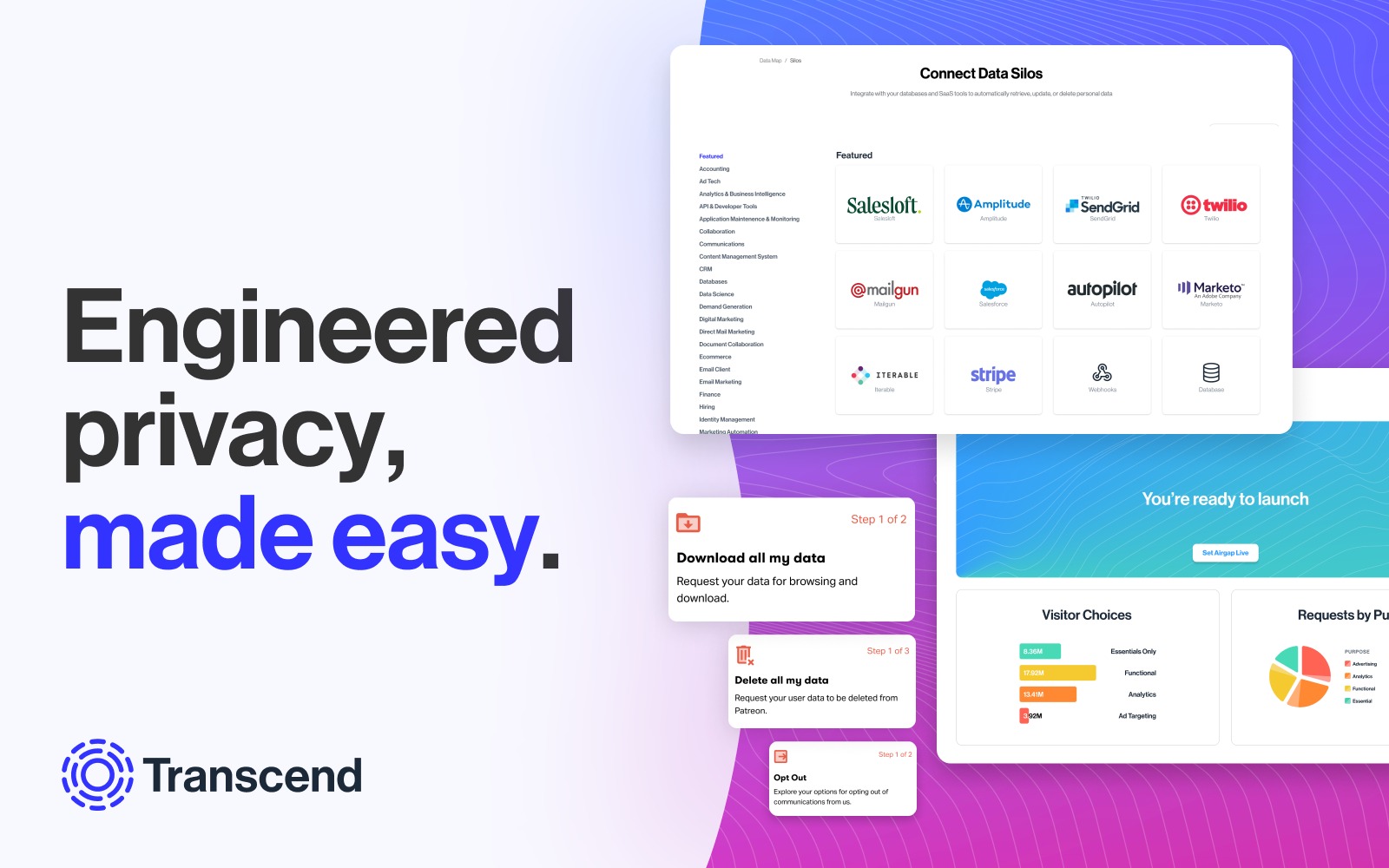 Transcend Privacy Requests is the easiest and most comprehensive way to delete, return, or modify a person's data or preferences across your entire tech stack.