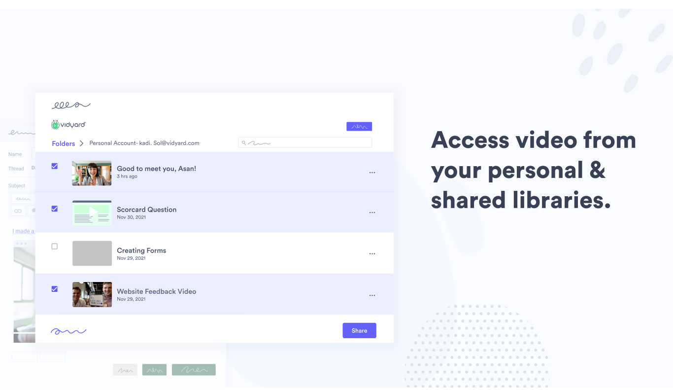 - Create videos for buyers using Vidyard’s easy-to-use webcam and screen recorder