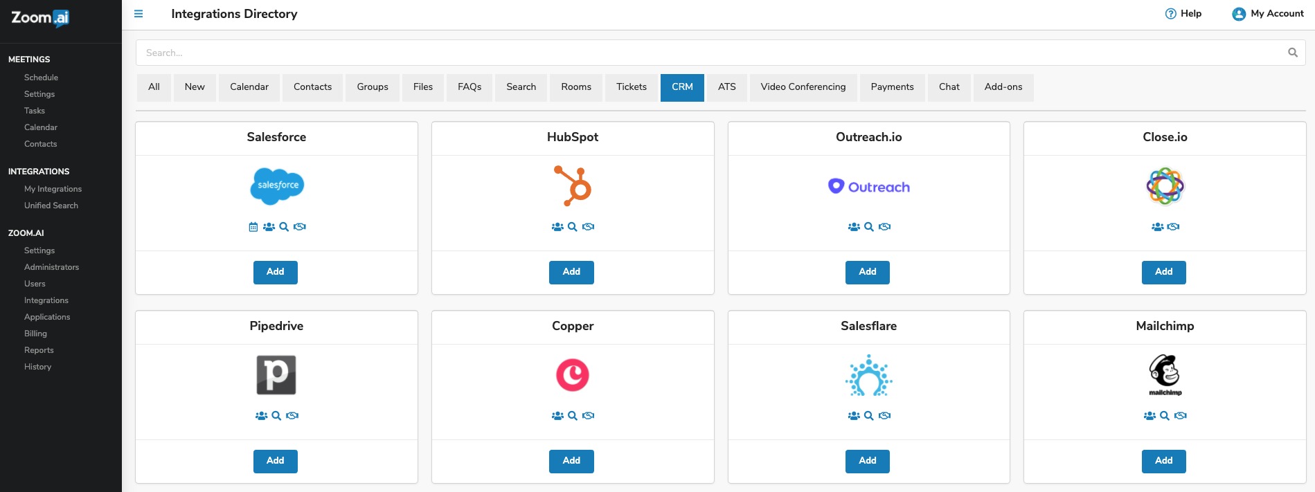 The Zoom.ai Meeting Assistant connects to a user's calendar when that user's first registers. The user can then optionally authorize access to their office applications and other work applications for additional functionality.